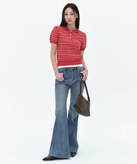 우먼즈 멀티 스트라이프 니티드 폴로 셔츠 [레드]