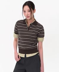 우먼즈 멀티 스트라이프 니티드 폴로 셔츠 [브라운]
