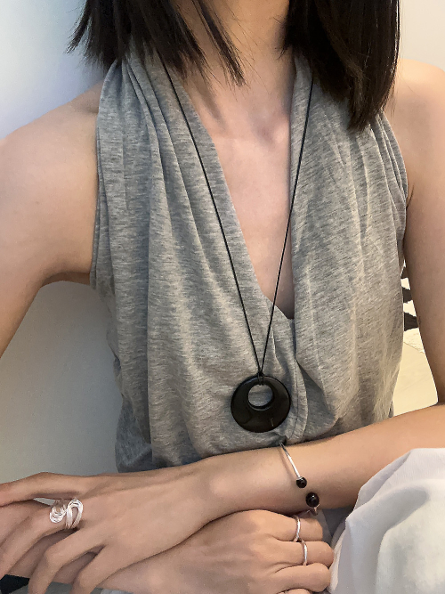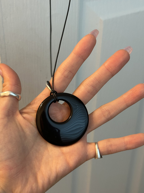 [925실버] 블랙 모나원석 롱 네크리스