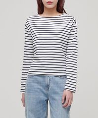 우먼즈 스트라이프 보트 넥 긴소매 티셔츠 [아이보리/네이비]