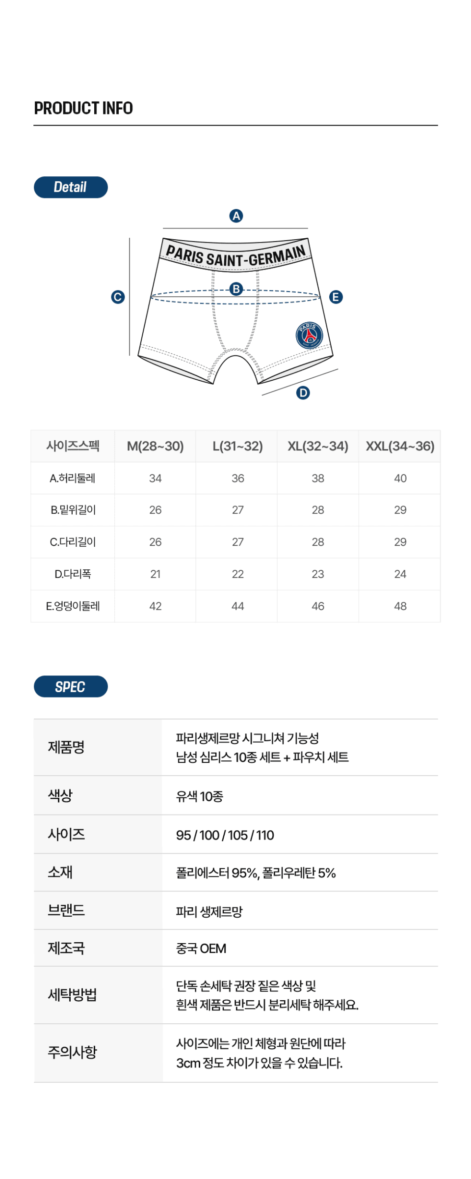 PSG 남성 심리스 드로즈 팬티 10종 + 신발주머니