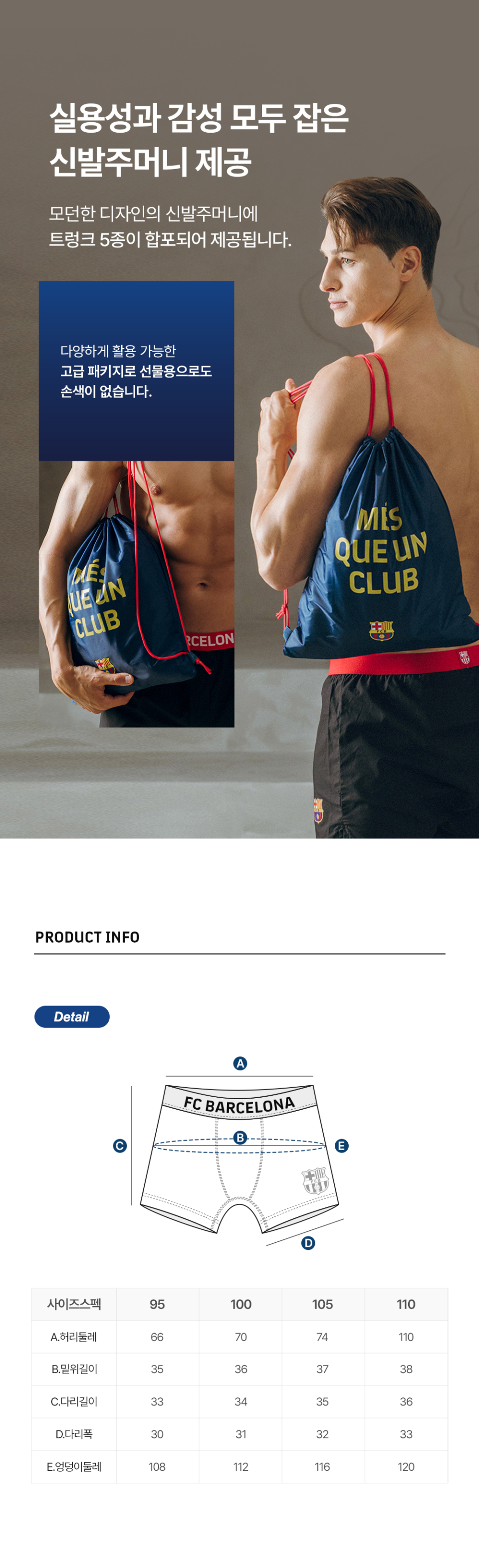 FC바르셀로나 프리미엄 코튼 남성 팬티 남성 트렁크 팬티 5종 + 신발주머니