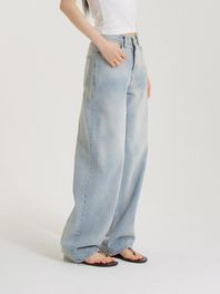 크라우드 워싱 와이드 데님 팬츠 라이트블루