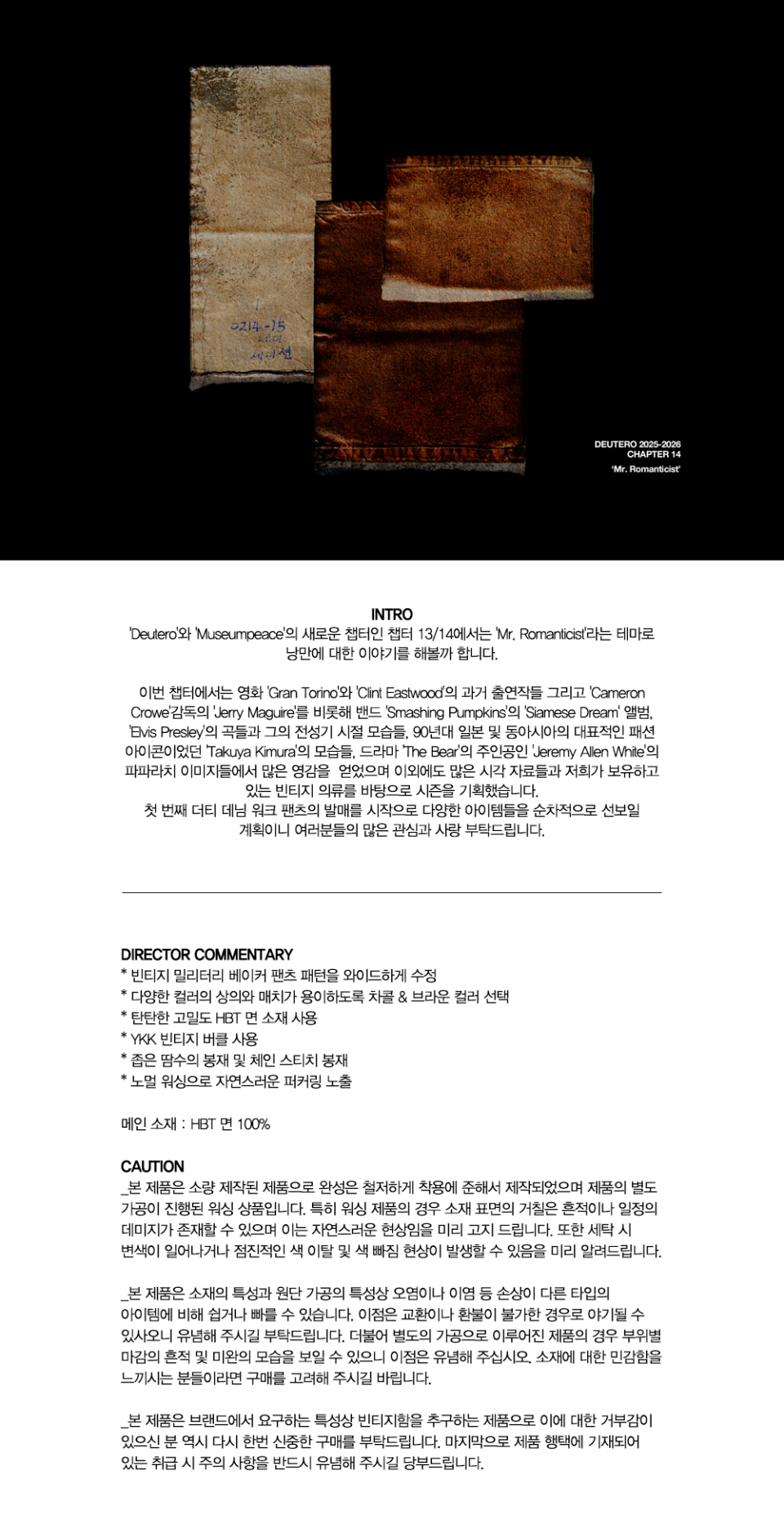 듀테로(DEUTERO)는 지나간 과거의 의미 있는 한 조각을 현재로 되돌리고 다시금 재해석해 여러분들과 공유하는 브랜드입니다. 영화나 음악을 비롯한 다양한 문화를 통해 얻은 영감을 바탕으로 기획하고 디자인한 뒤 완성도 높은 결과물을 만들어 내는 것에 초점을 맞춥니다. 듀테로는 이러한 모든 과정이 가치 있는 행동이자 브랜드가 가져야 할 철학이라고 믿습니다.