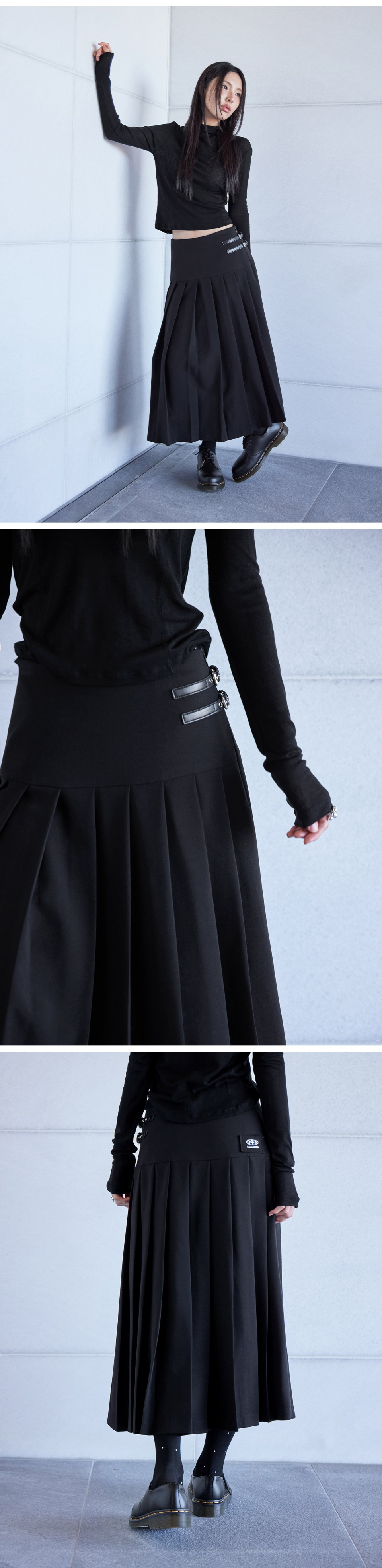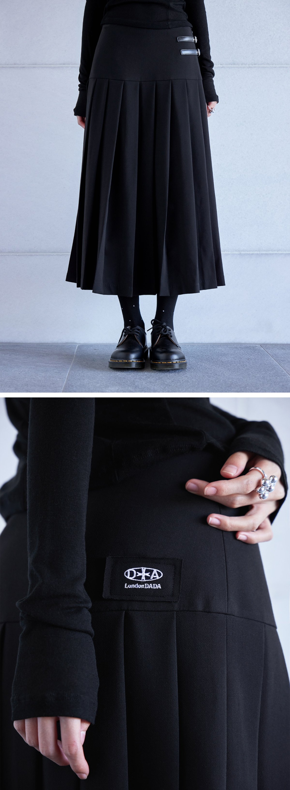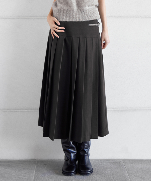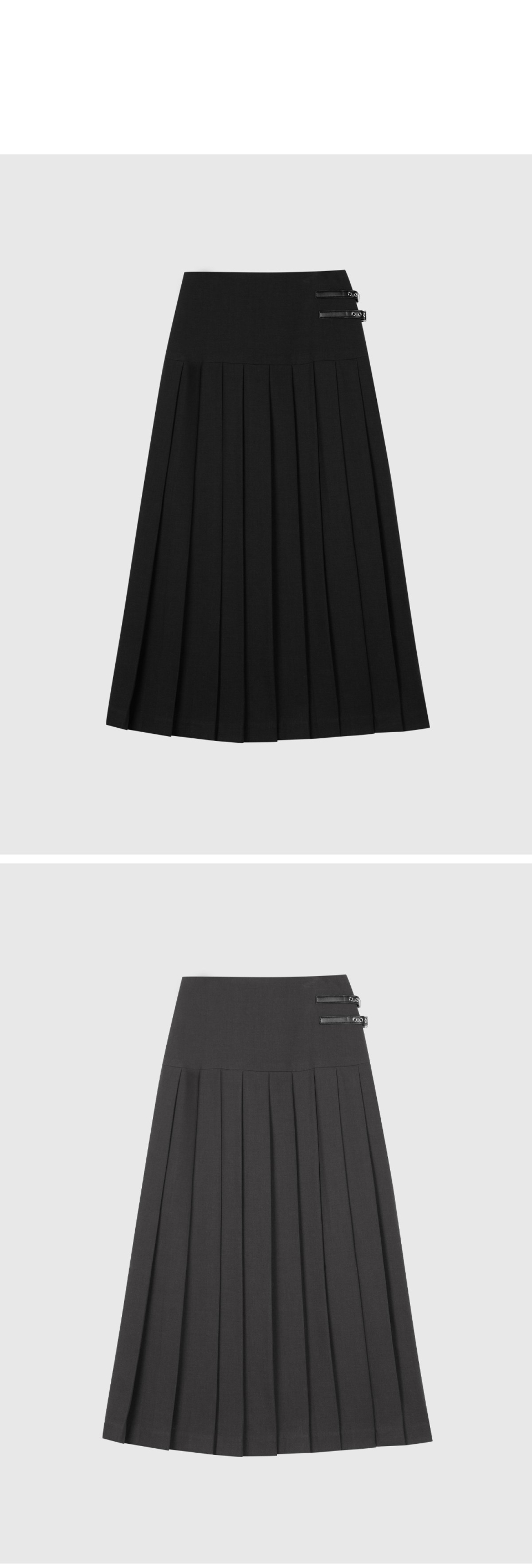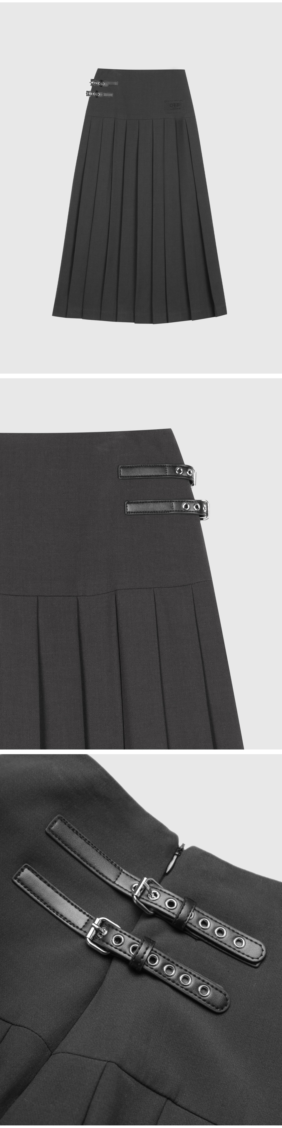 LOGO PATCHED BUCKLE PLEATS SKIRT, GREY