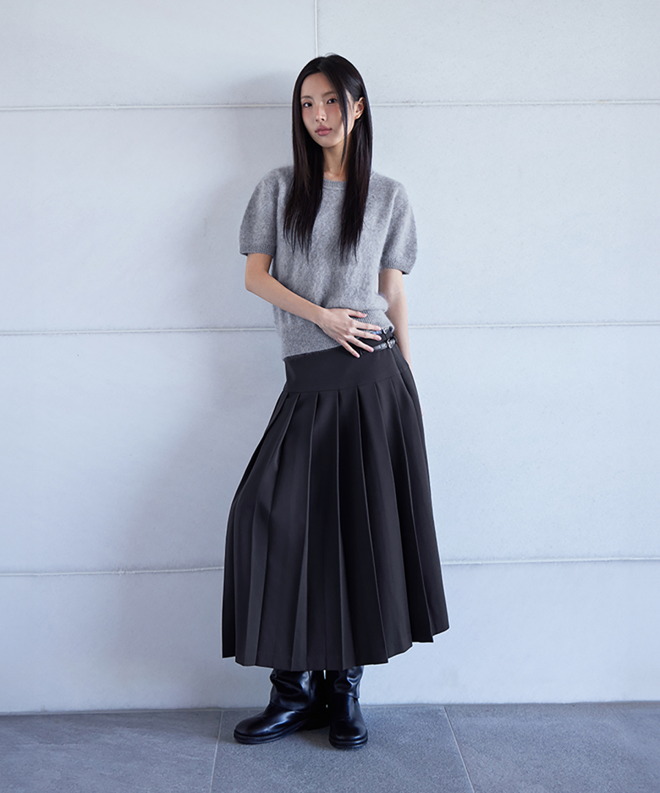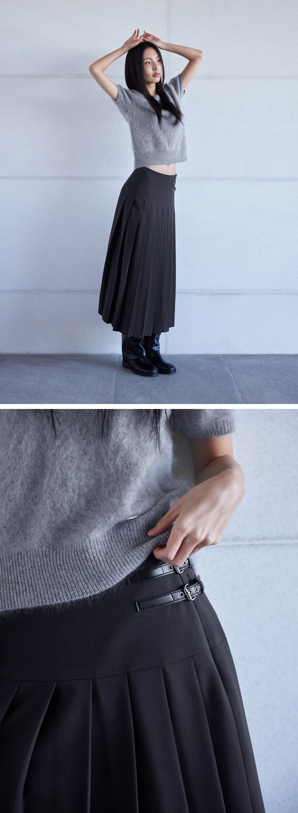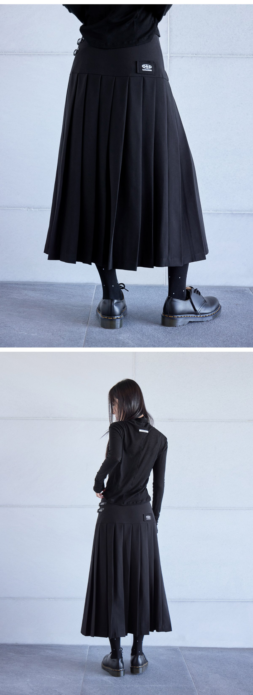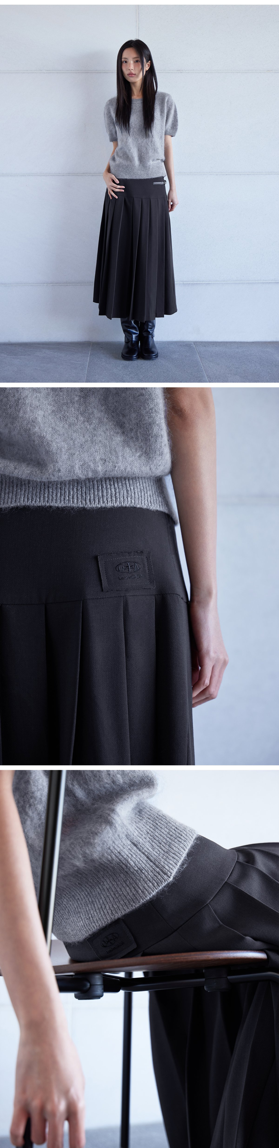 LOGO PATCHED BUCKLE PLEATS SKIRT, GREY