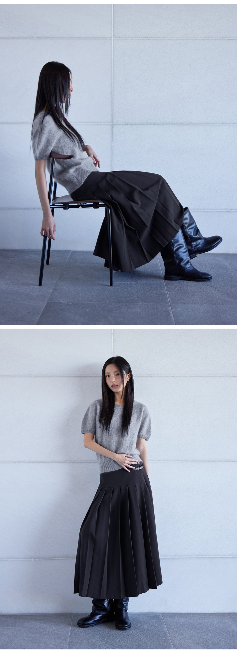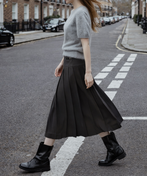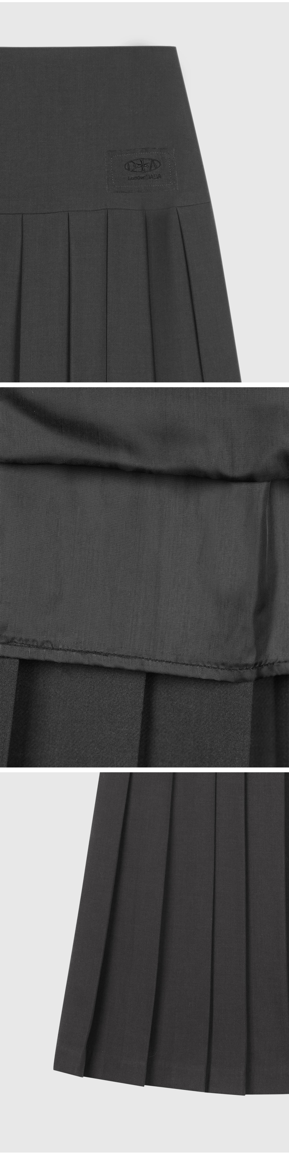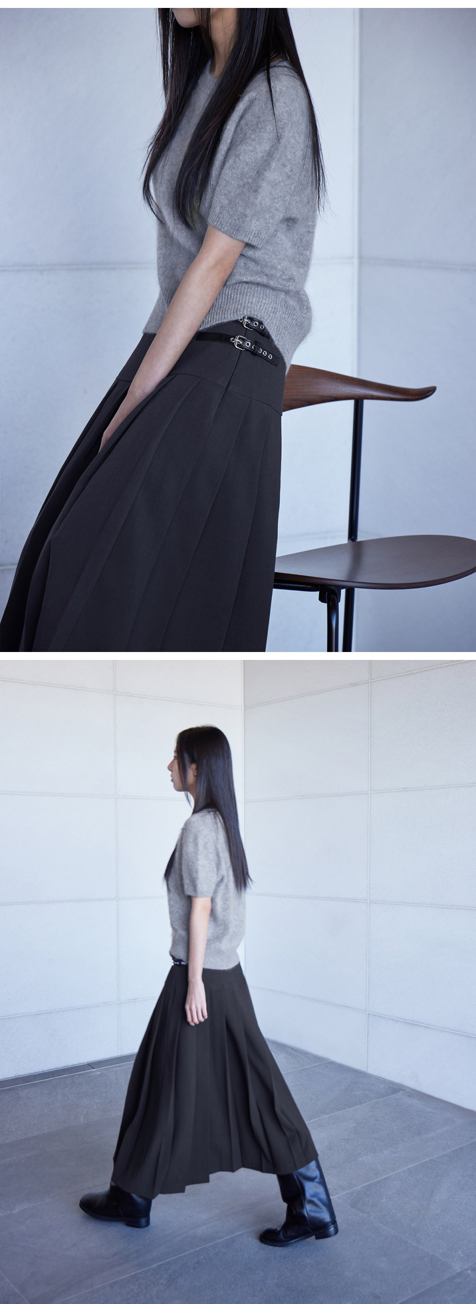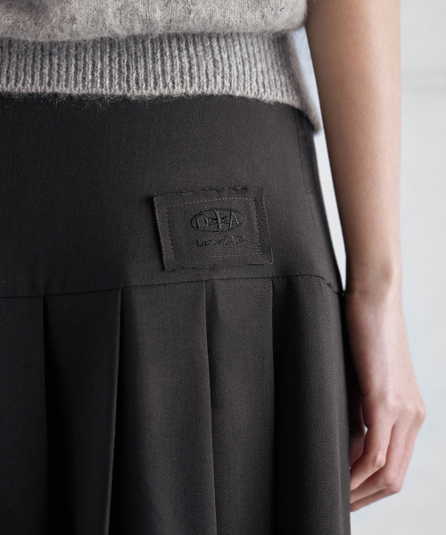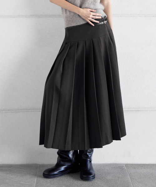 LOGO PATCHED BUCKLE PLEATS SKIRT, GREY