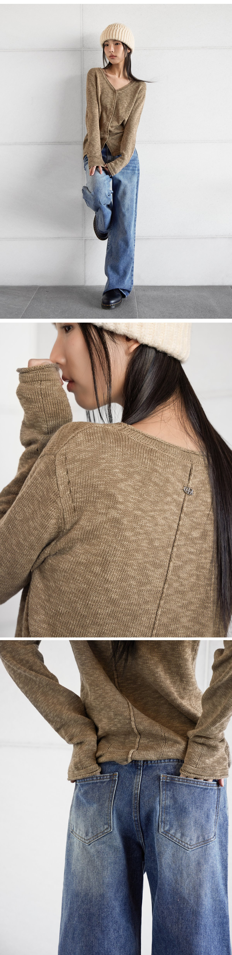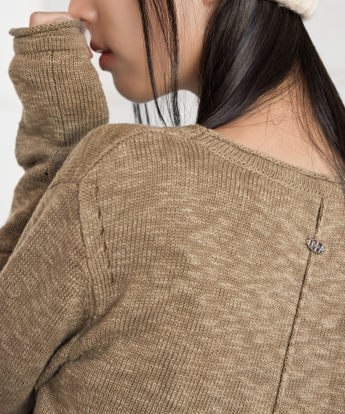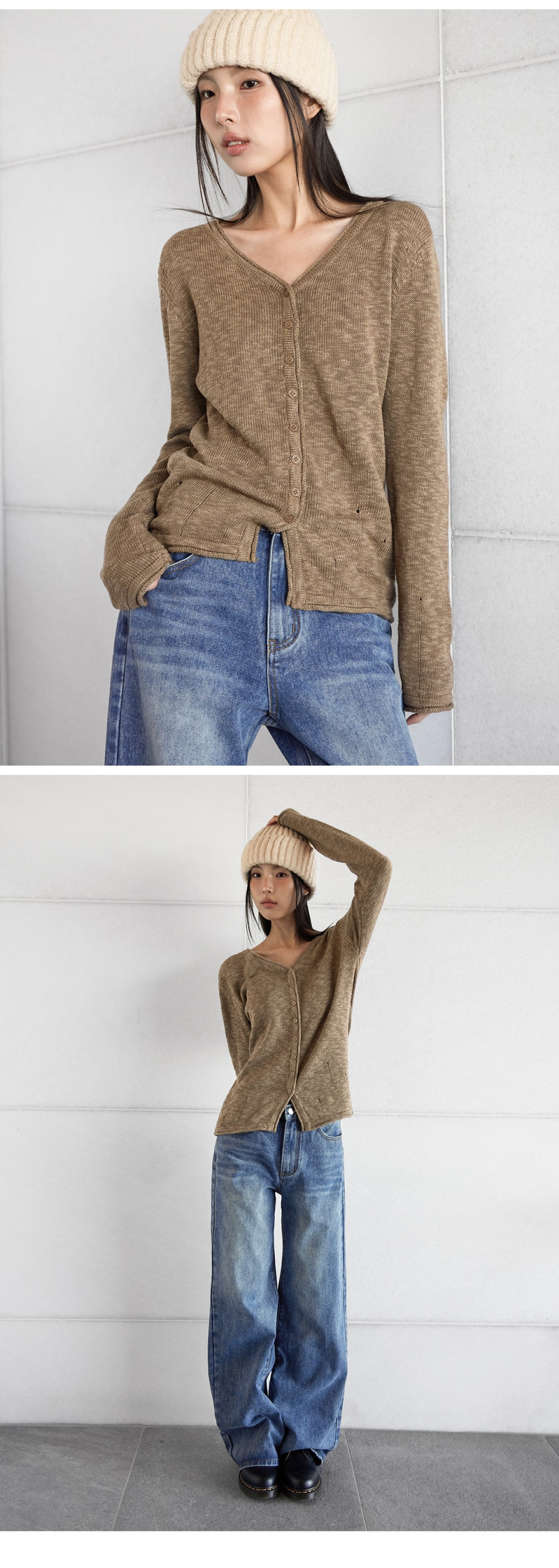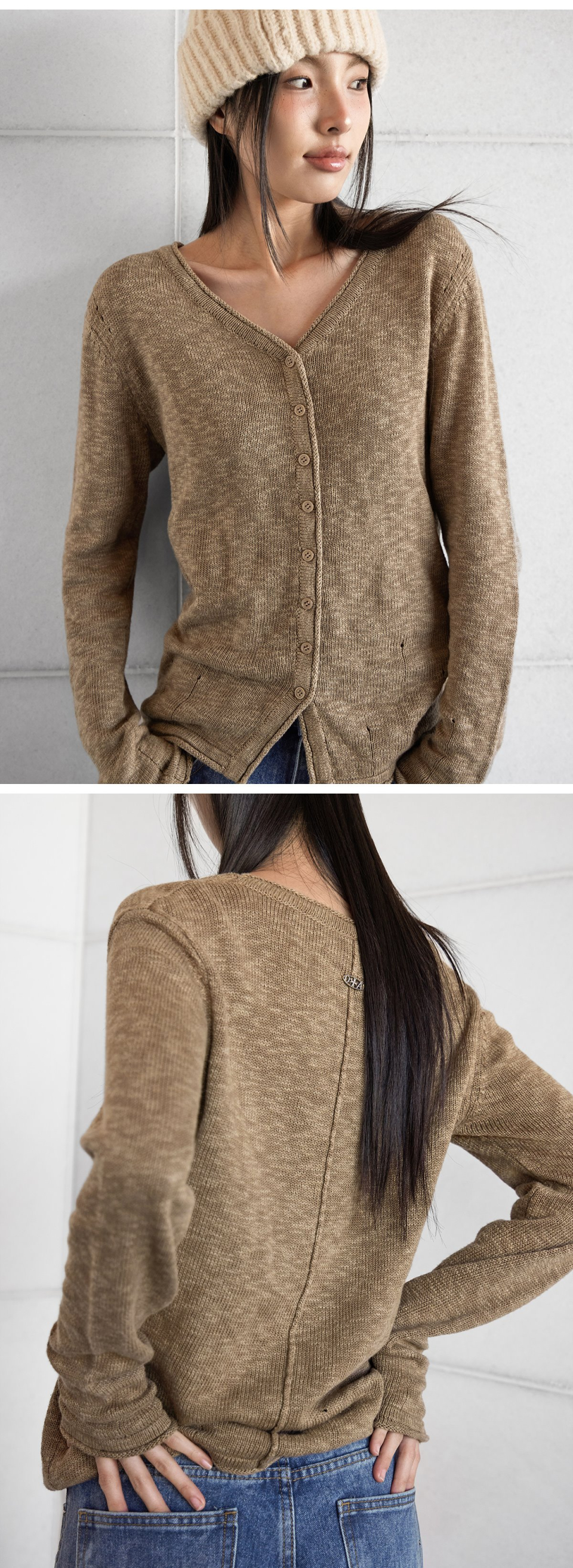BOKSASH PENDANT V-NECK CARDIGAN, CAMEL BROWN