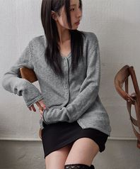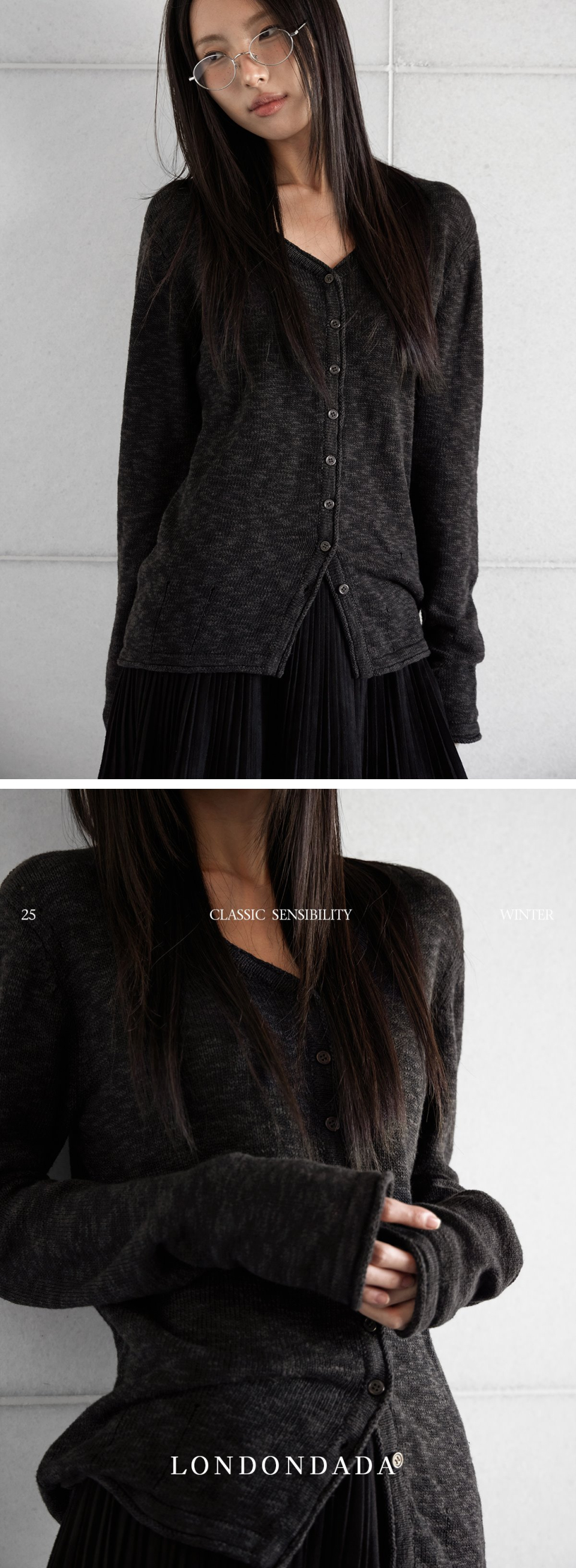 BOKSASH PENDANT V-NECK CARDIGAN, GREY