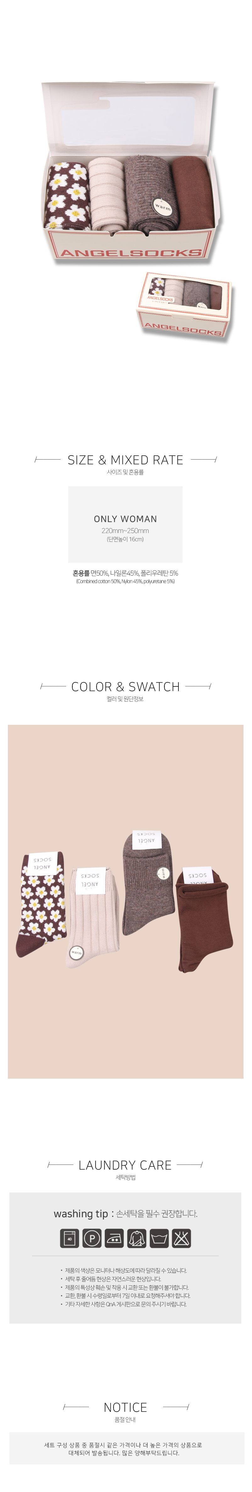ANGEL SOCKS(엔젤삭스)는 디자이너가 직접 제작, 생산, 초이스 하는 풋 웨어 전문 브랜드입니다. 직, HAND LINKED TOE 등의 고급 편직기술과 앙고라, 울, 슬러브사 등의 다양한 소재를 사용하여, 모던한 색상과 패턴의 상품부터 컬러풀하고 위트 넘치는 다양한 상품을 제작합니다.