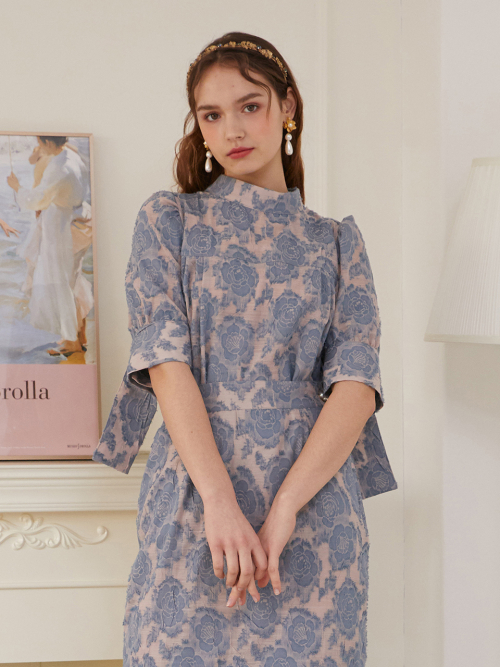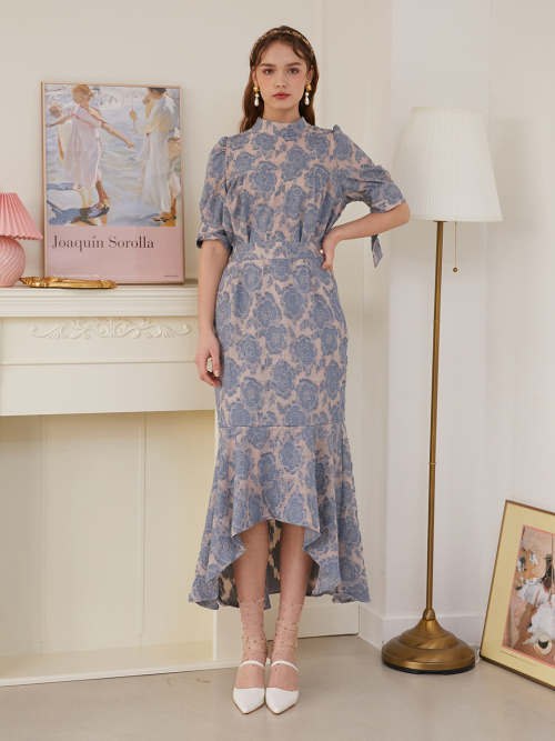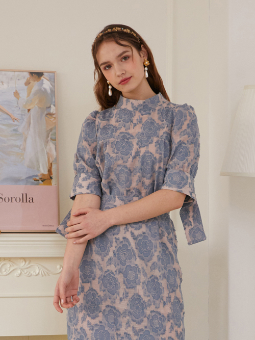 하객룩 니트 배색 플리츠 롱원피스_블랙