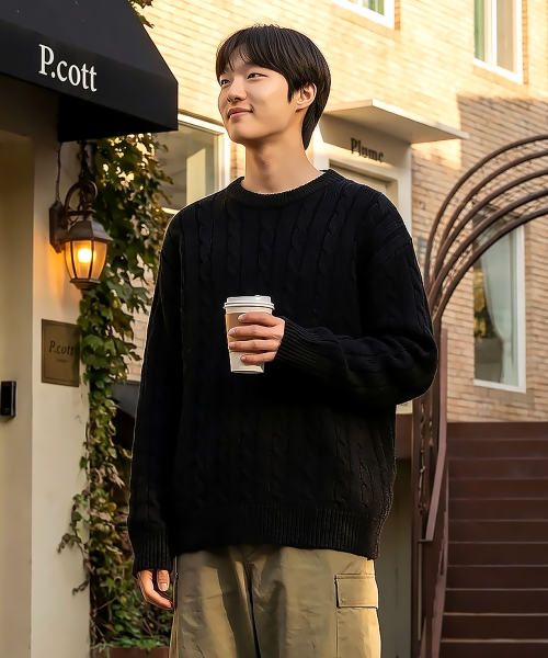 베이직 꽈배기 케이블 라운드넥 니트 5 Color [ULZK_0001]