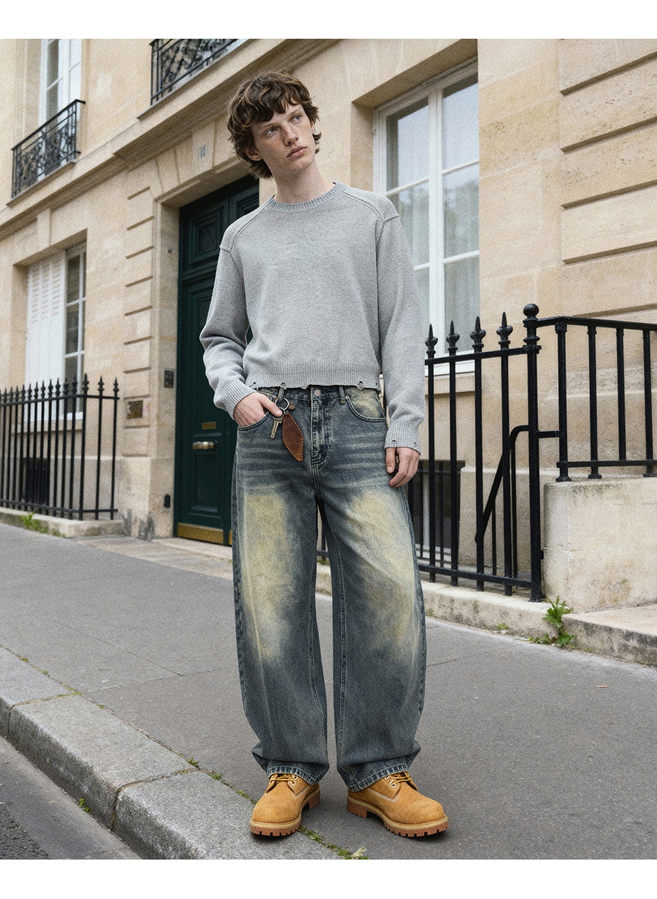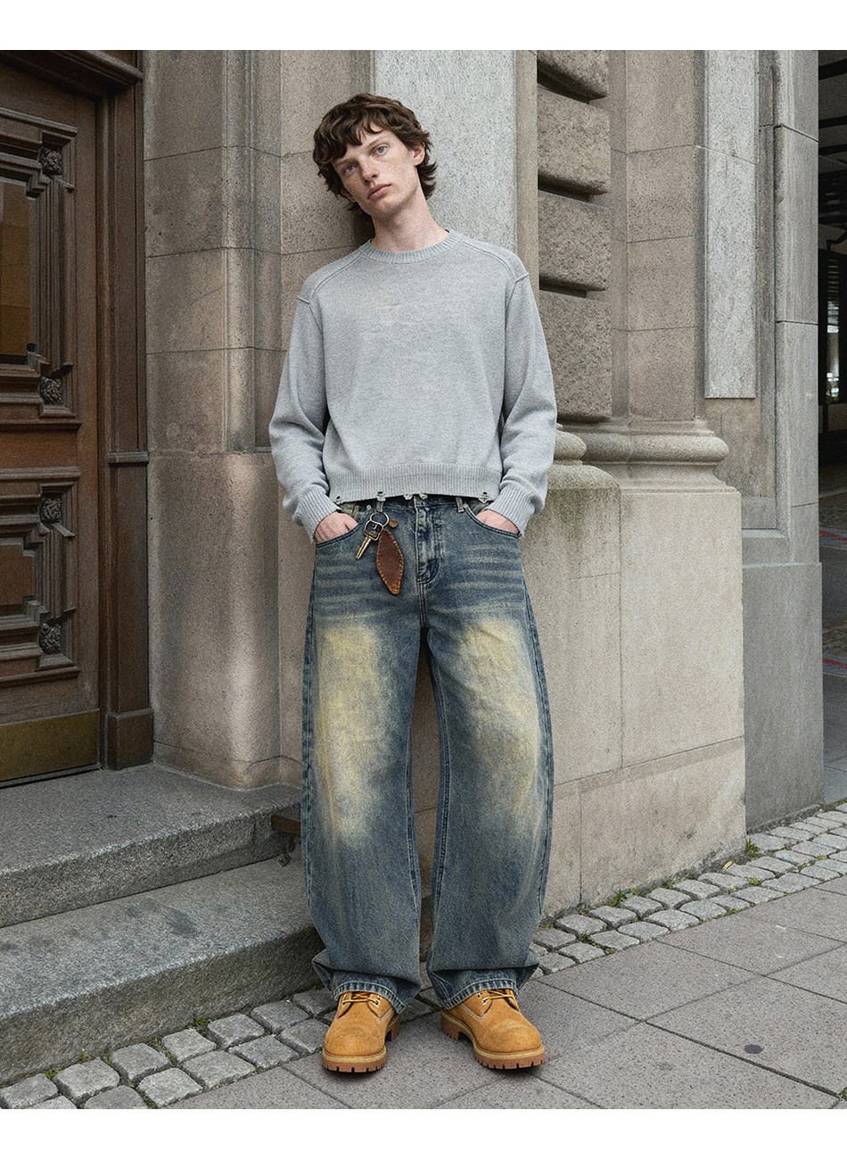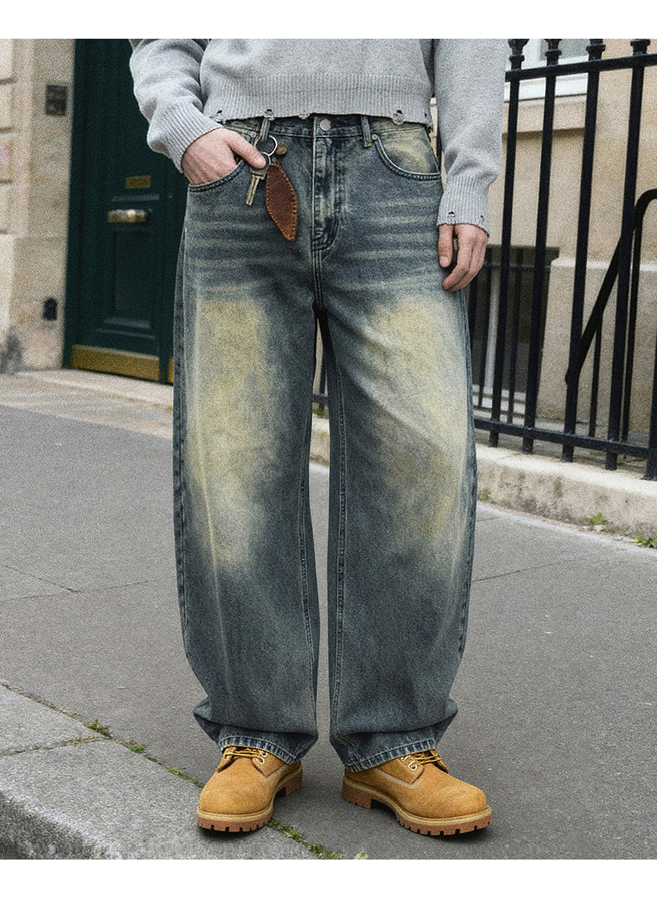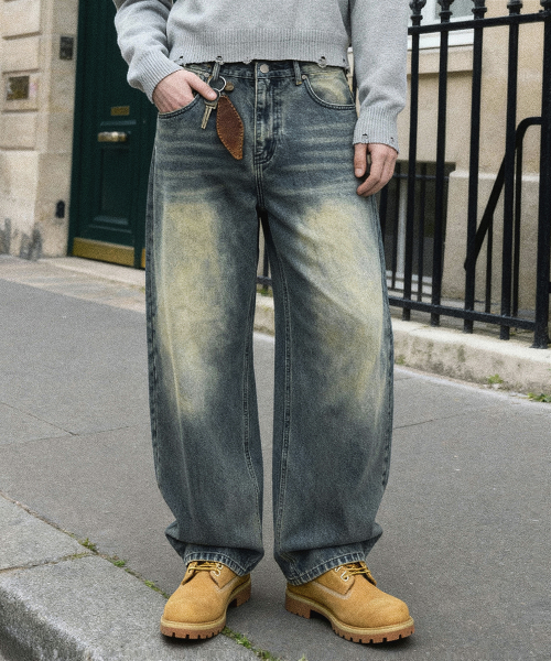 드로우 커브드 데님팬츠 (생지)