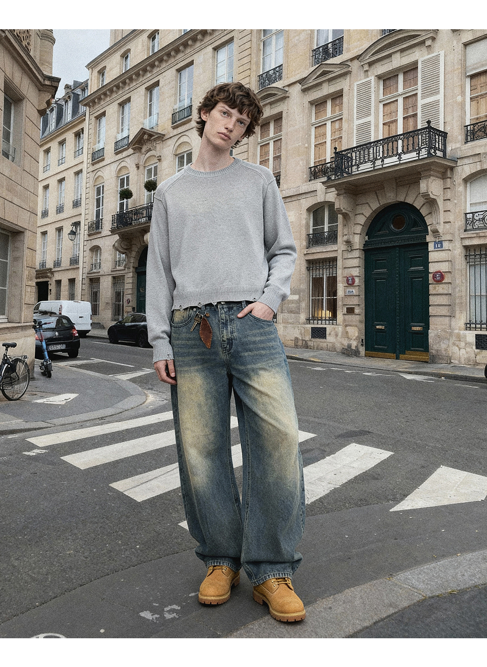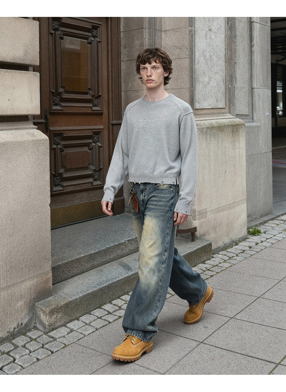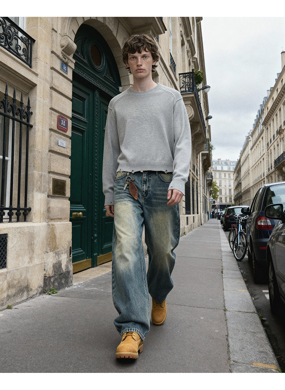 드로우 커브드 데님팬츠 (생지)
