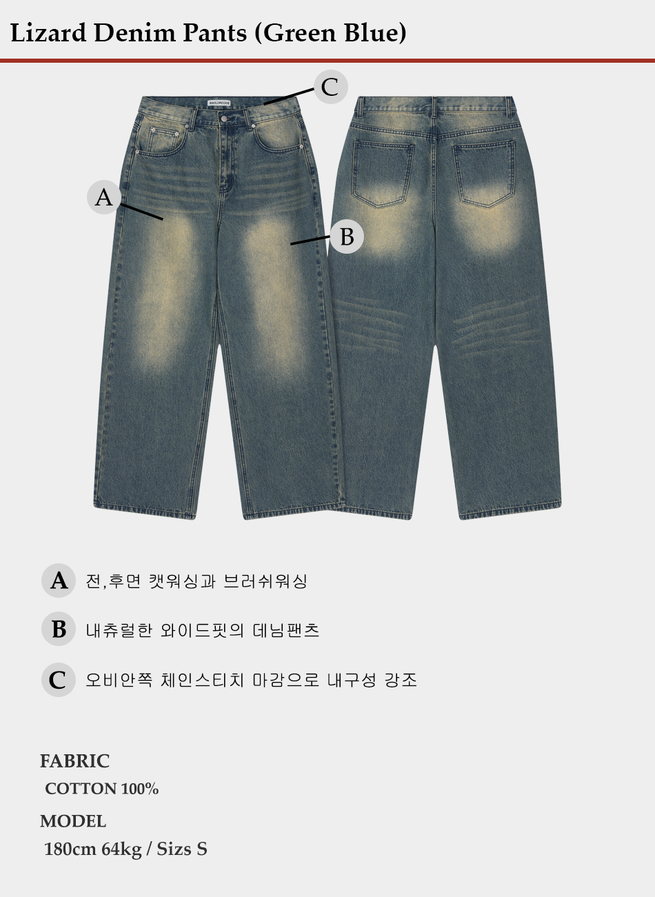 리자드 데님팬츠 (흑청)