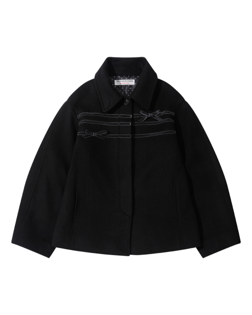 WOOL BLEND RIBBON HALF COAT (BLACK)