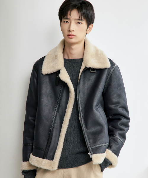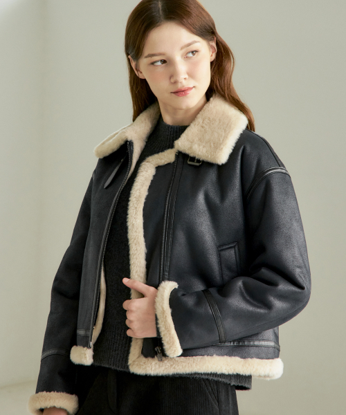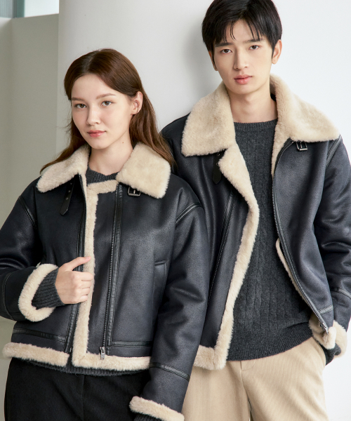 남녀공용 하이넥 비건 레더 무스탕 자켓 [블랙]_ZF4JP041