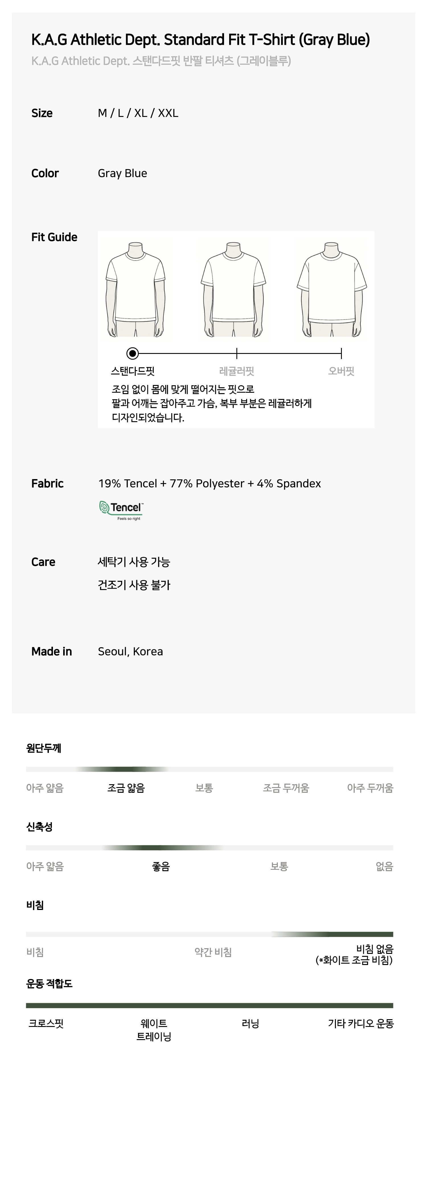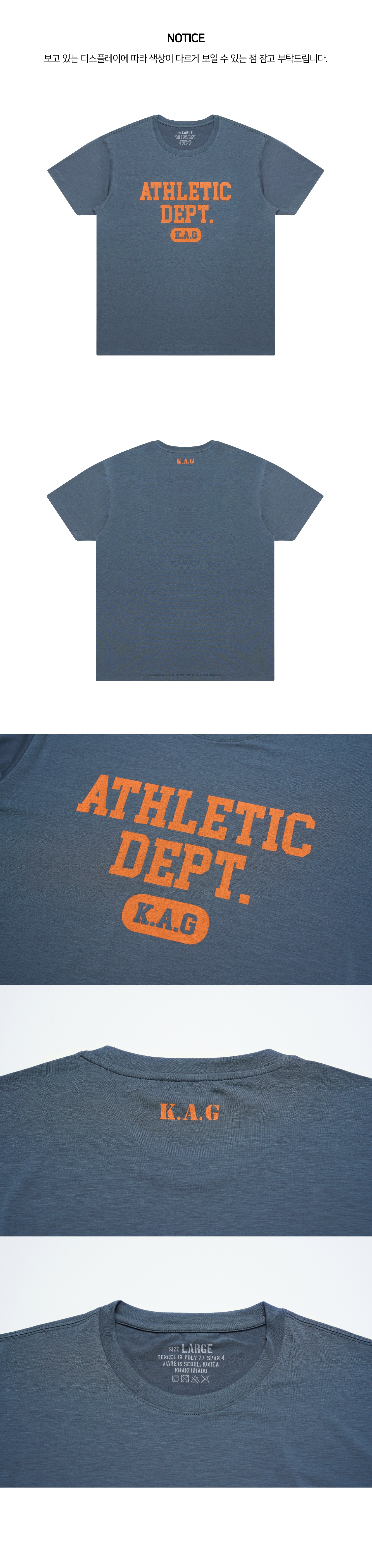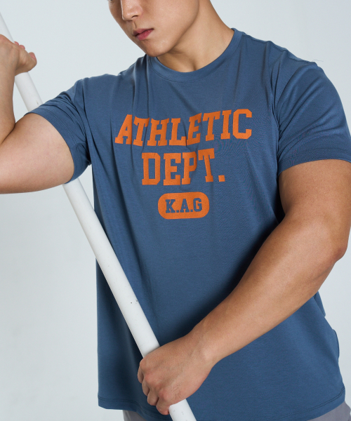 K.A.G Athletic Dept. 스탠다드핏 반팔 티셔츠 (Gray Blue)
