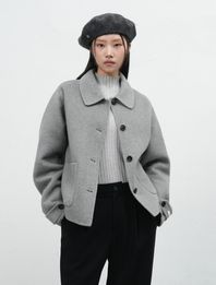 울 카라 핸드메이드 숏 코트 [MELANGE GREY] / WBE3L10511
