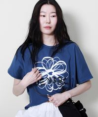 프렌치슬리브 드마크플라워 세미크롭 반팔 티셔츠 블루