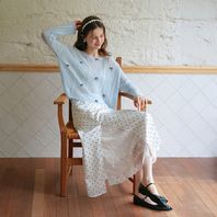 Cest_Polka dot lace layered skirt
