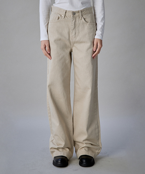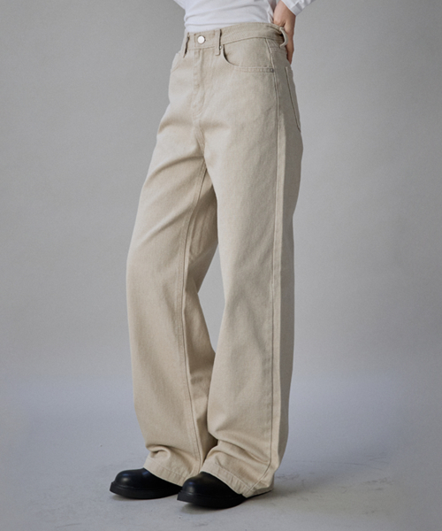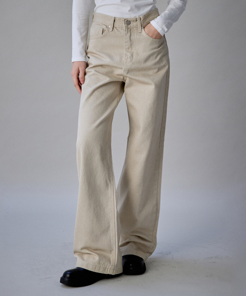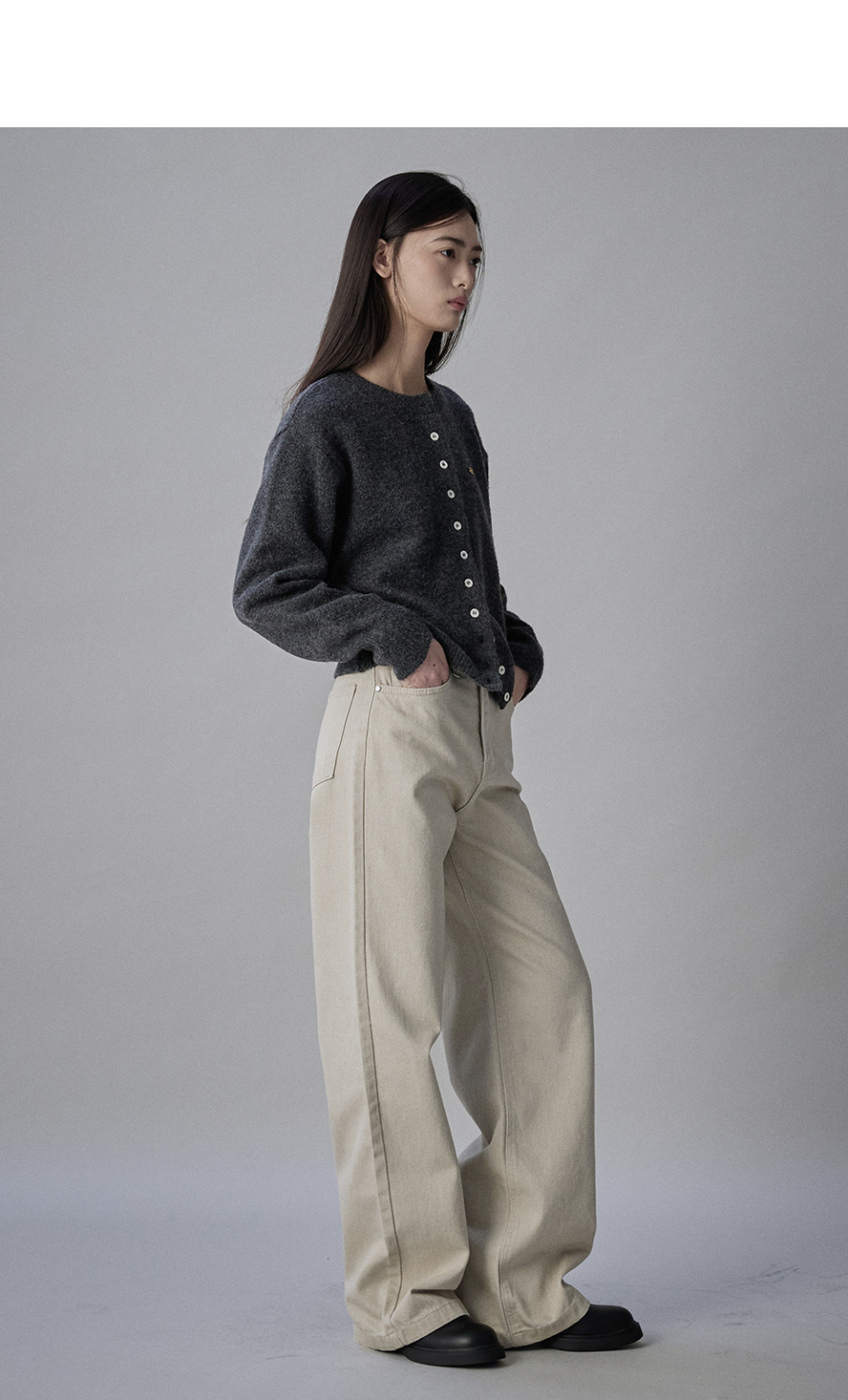 힙부터 자연스럽게 떨어지는 와이드 스트레이트 핏으로 데일리 룩은 물론 하이엔드 캐주얼 무드로도 완성도 높은 아이템입니다.