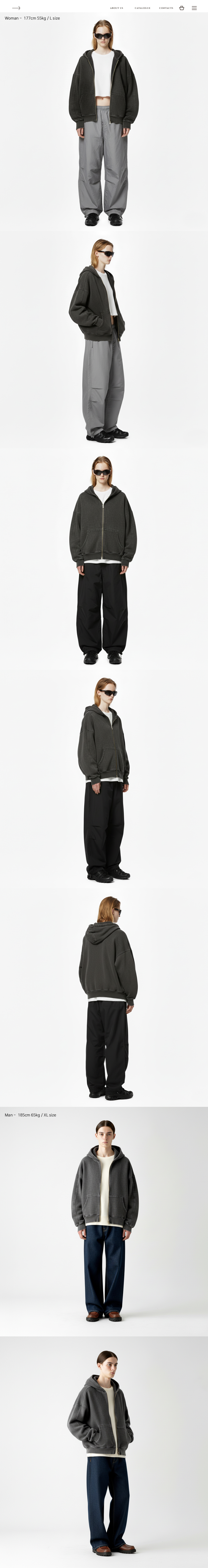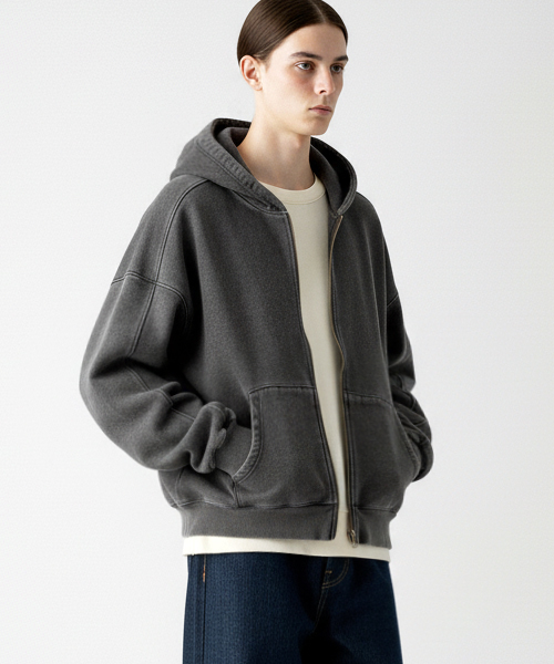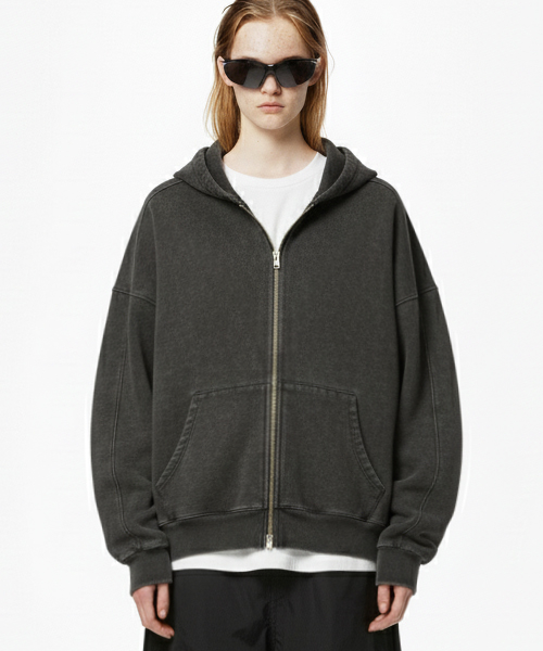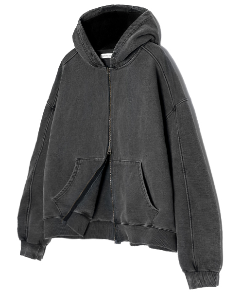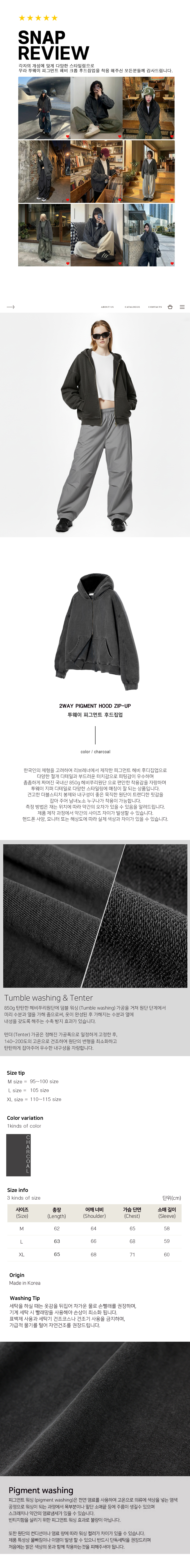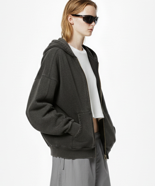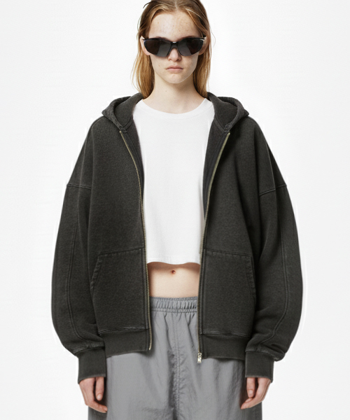 무라 투웨이 피그먼트 헤비 크롭 후드집업 차콜