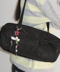 HEART RIBBON POCKET DUFFLE BAG BLACK