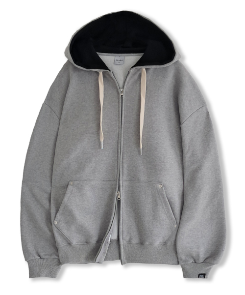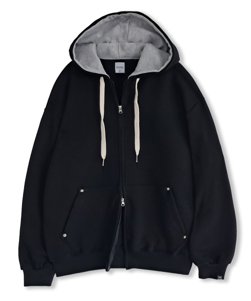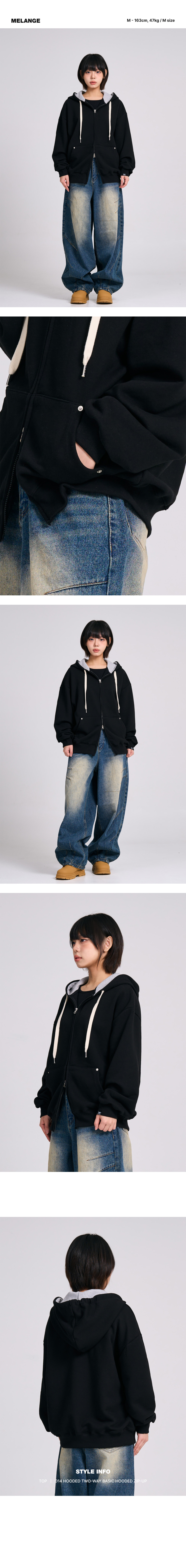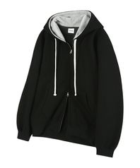 D14 (기모) 후드 배색 베이직 투웨이 후드집업_블랙