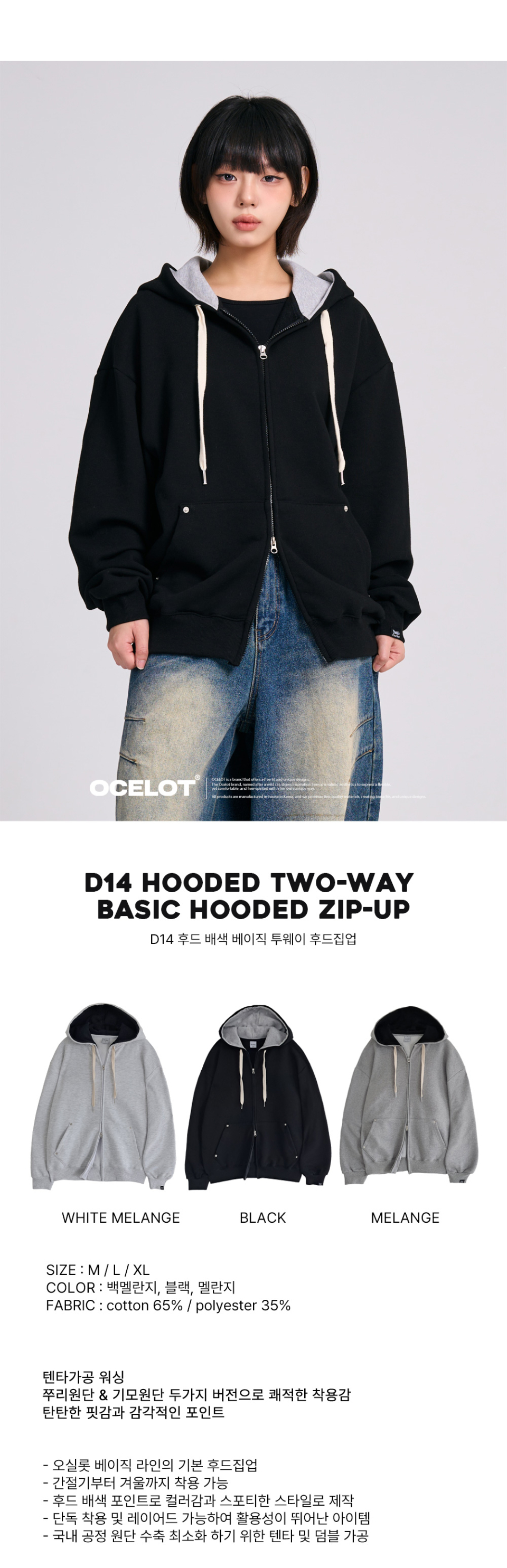 D15 베이직 투웨이 후드집업_블랙