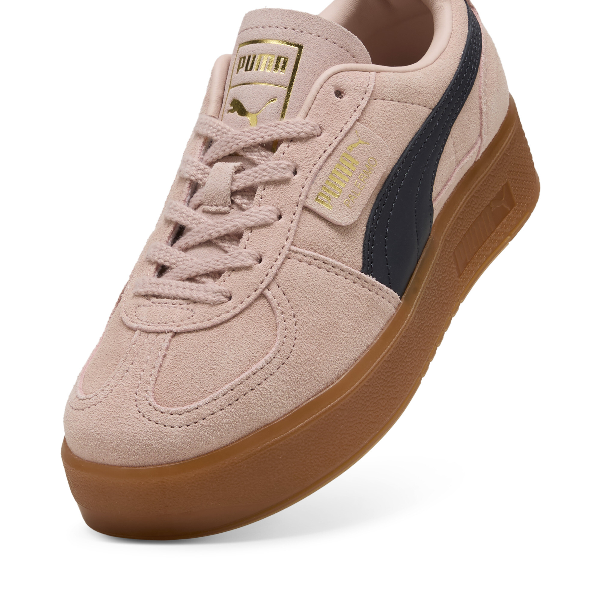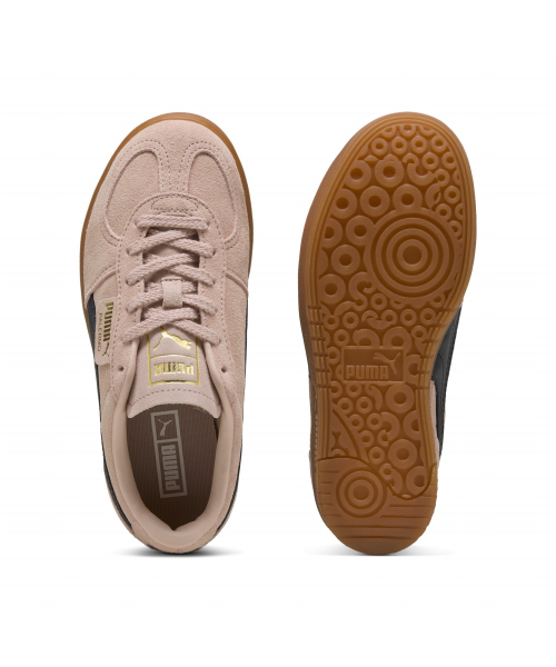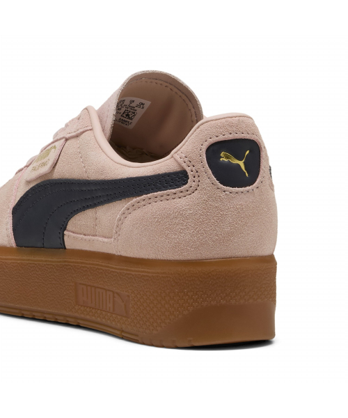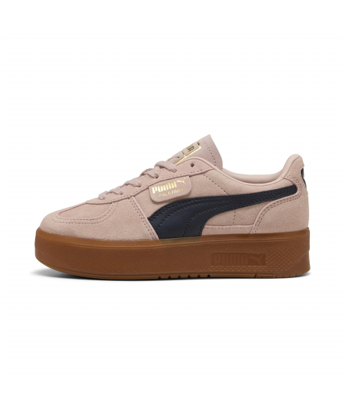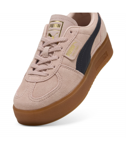 Palermo Elevata는 PUMA 테라스 슈즈 프랜차이즈의 독특하고 대조적인 해석을 위해 오리지널 모델의 클래식한 갑피를 가져와 모던한 플랫폼 아웃솔과 결합시킨 새로운 버전입니다. 스웨이드 베이스의 스니커즈로, 가죽 폼스트립과 호일 프린팅된 PUMA 및 PALERMO 브랜딩 디테일이 특징입니다. \n\n1980년대 축구 경기장 문화를 대표하는 패션 아이템으로, 테라스 관중들과 축구 팬들에게 수십년간 사랑 받아온 스니커즈 입니다. 클래식한 T-Toe 구조, 스웨이드 갑피에 달린 시그니처 택, 검(gum) 아웃솔이 특징입니다.