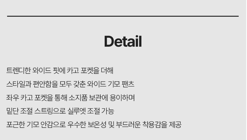 | 소재 | [BLK0]겉감:면(74)폴리에스터(26),[BLK0]안감:폴리에스터(100),[MGR0]겉감:면(74)폴리에스터(26),[MGR0]안감:폴리에스터(100) (입고 시기에 따라 정보가 상이할 수 있어, 수령하신 상품의 라벨을 참고하시기 바랍니다.) |