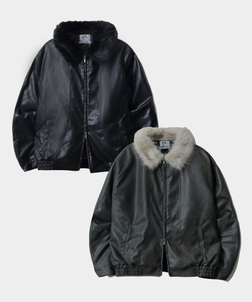 소프트 카라 퍼 베이직 워싱 투웨이 집업 레더 자켓 점퍼_2COLOR