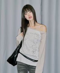 크로스 오너먼트 오프숄더 래글런 롱 슬리브 - GRAY BEIGE