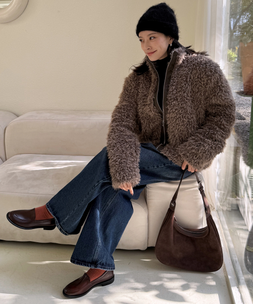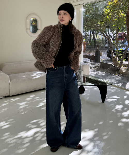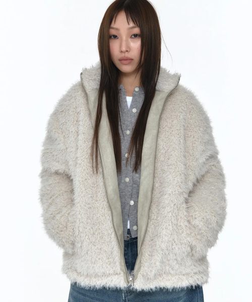 하이넥 소프트 퍼 우먼즈 풀오버 오버핏 집업 자켓 _3COLOR
