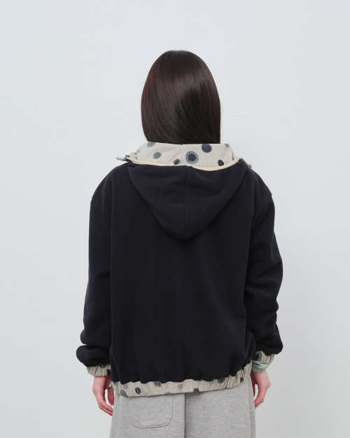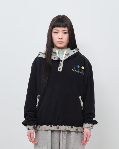 UNBALANCED FLEECE ANORAK HOODIE (BLACK)
