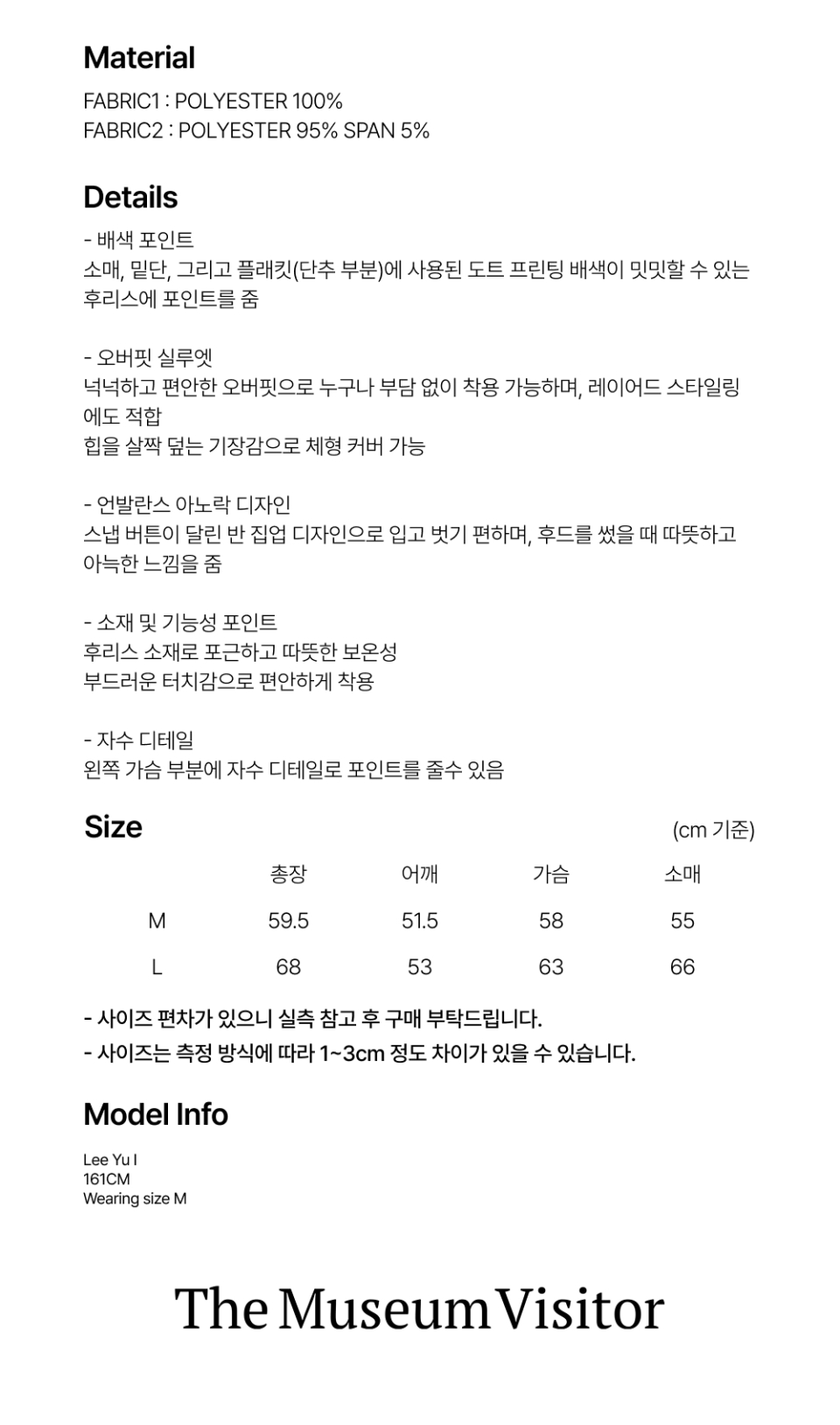 더뮤지엄비지터(THE MUSEUM VISITOR)는 2016년 디렉터 박문수의 독일 베를린 여정에서부터 시작된 브랜드입니다. 거리와 사람들에게서 느낀 자유와 사랑, 행복, 예술이 담긴 도시에서 받은 영감을 많은 이들에게 전하고자 합니다. 주로 꽃과 하트, 자연, 아이들이 디자인적 요소로 나타나며, 수작업이 가미된 차별적인 디자인 덕에 많은 마니아층의 사랑을 받고 있습니다.