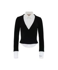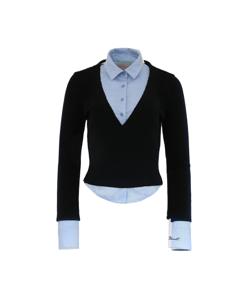 LAYERED V NECK KNIT SHIRTS WHITE/BLACK