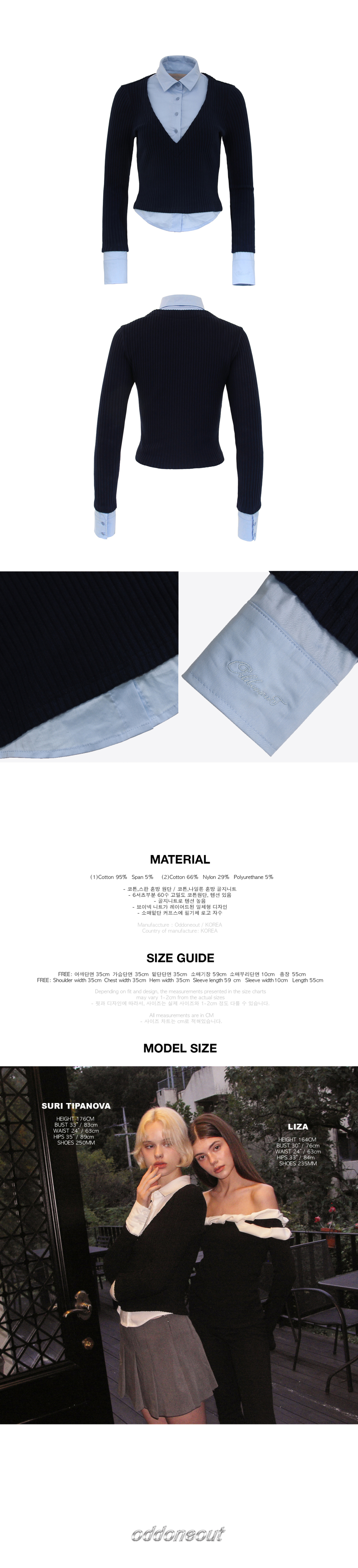 LAYERED V NECK KNIT SHIRTS SKY/NAVY