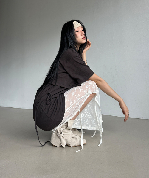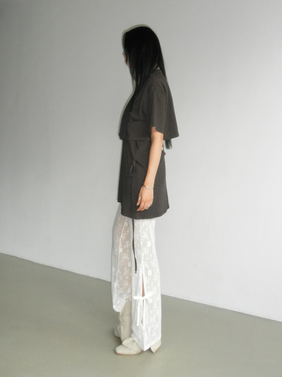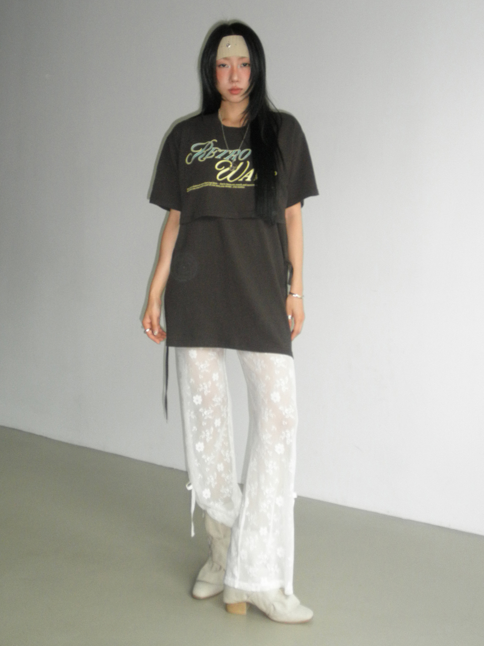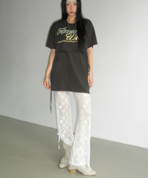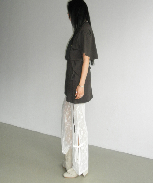 - 레이스 팬츠 하단에 트임을 조절할 수 있어 슬림,와이드 연출가능
