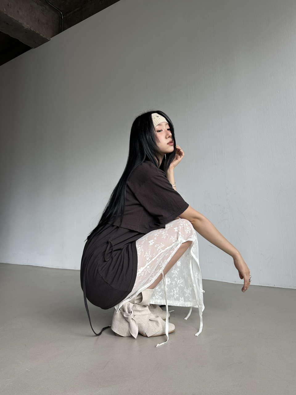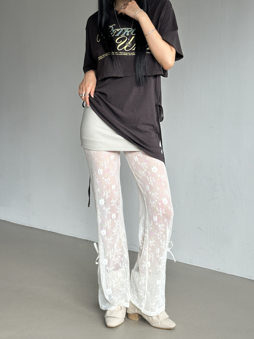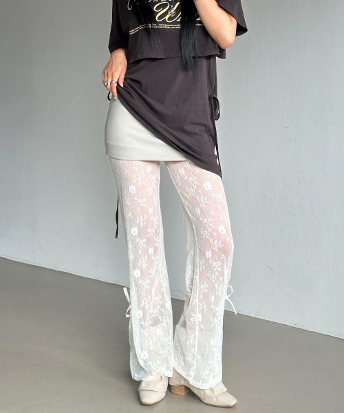 - 로맨틱한 레이스소재의 팬츠가 믹스