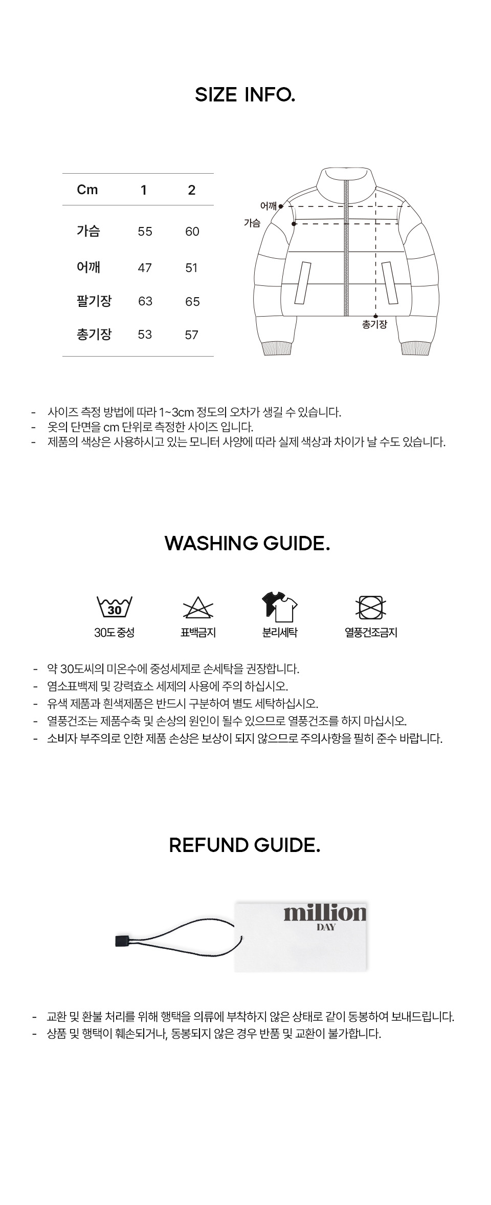 밀리언데이(MILLION DAY)는 'Anything can happen in a day(하루 안에 그 어떤 일이든 일어날 수 있다)'라는 슬로건 아래 키치한 그래픽과 디자인, 로고 플레이를 바탕으로 20~30대를 타깃으로 한 영 캐주얼 브랜드입니다.