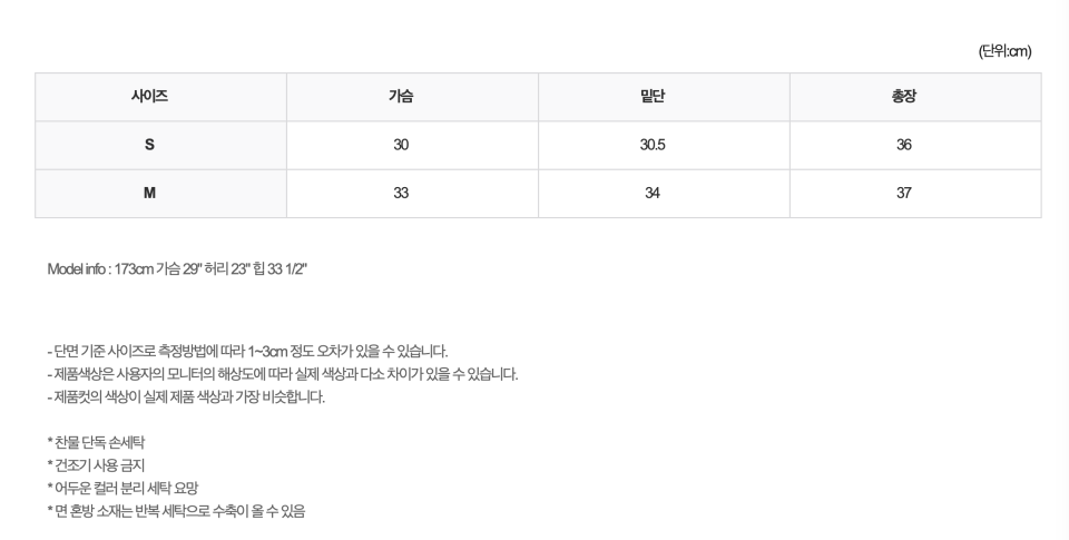 혼용률 : cotton 95% span 5%