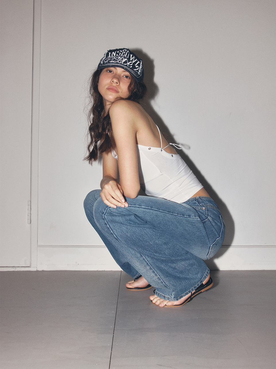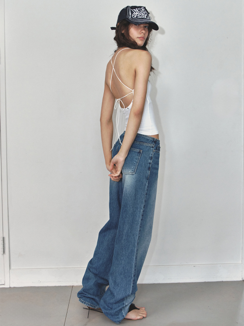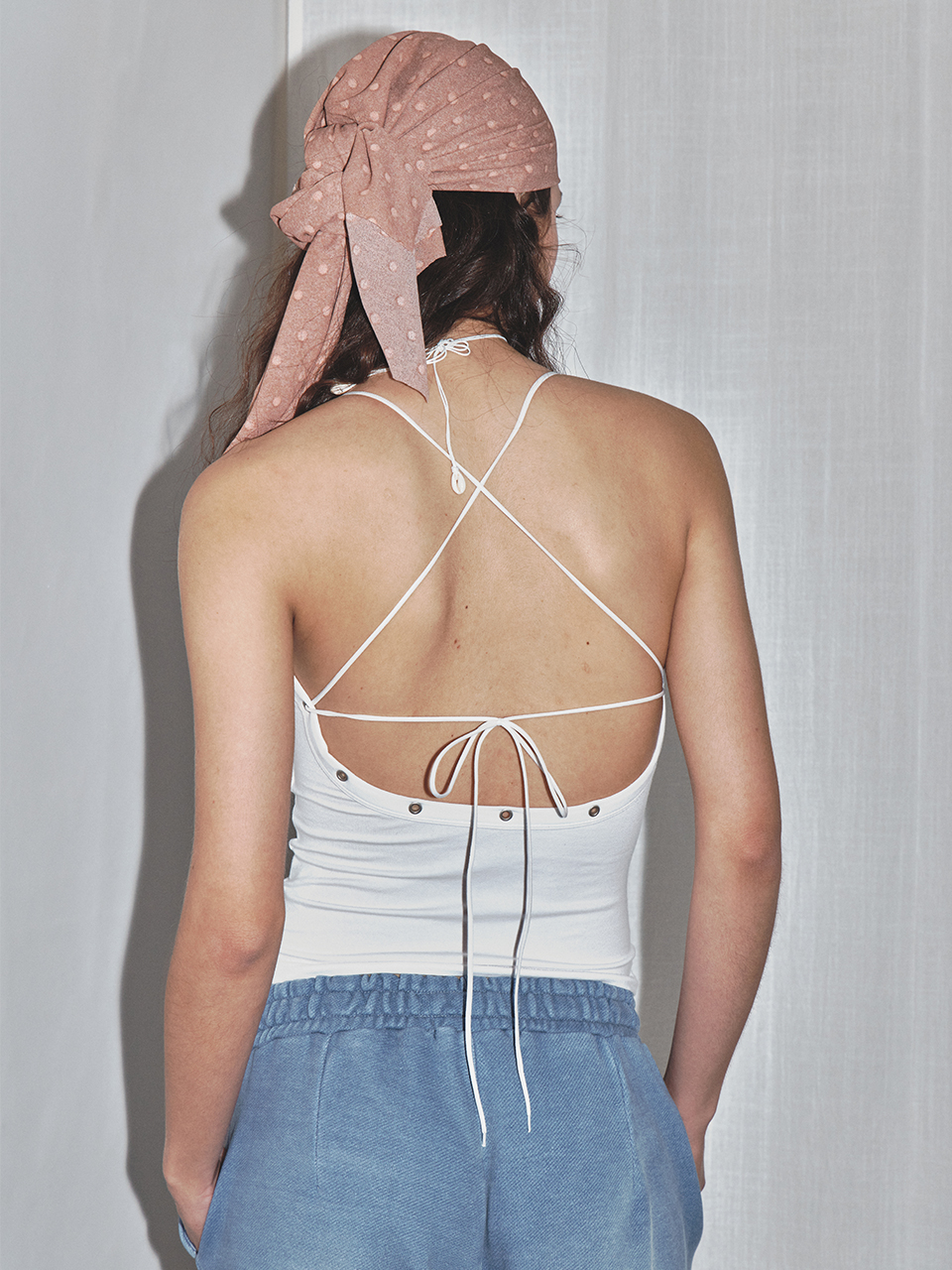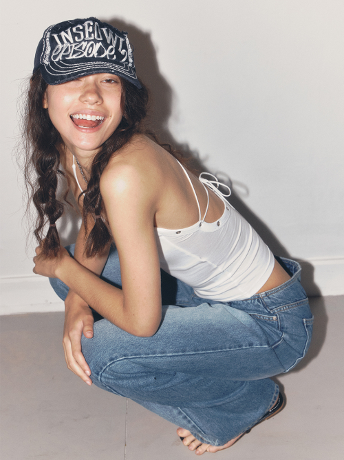 - 뒷판 아일렛 장식, 원하는 위치에 끈을 끼워 다양한 무드로 연출 가능
