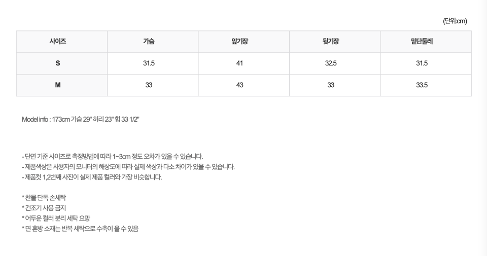 - 얇지만 탄탄한 면스판 소재로 쫀쫀한 착용감이 특징