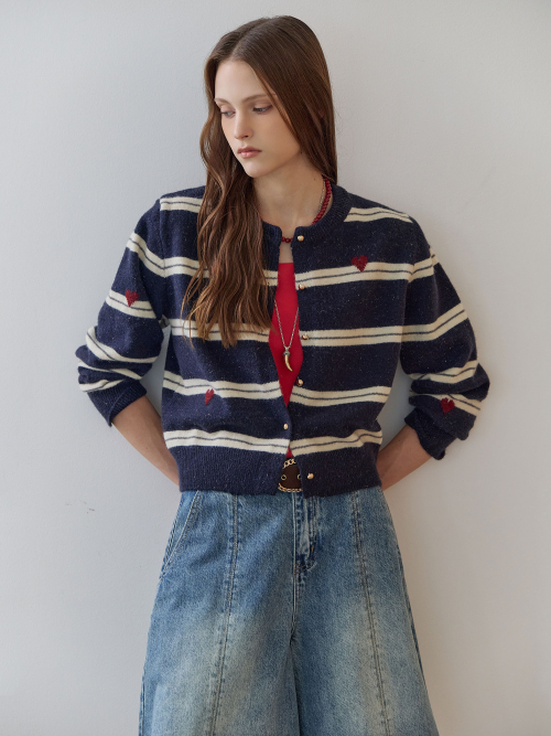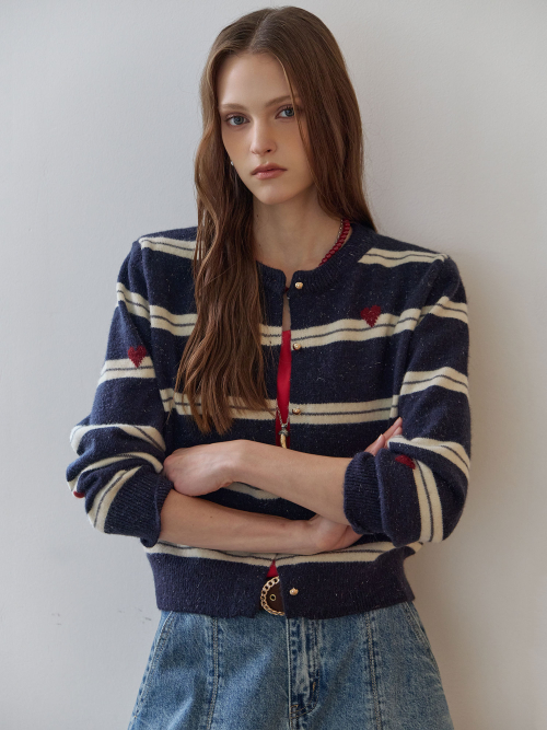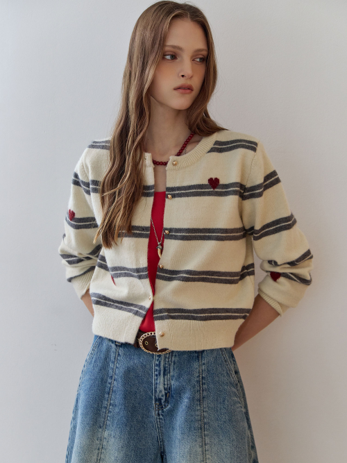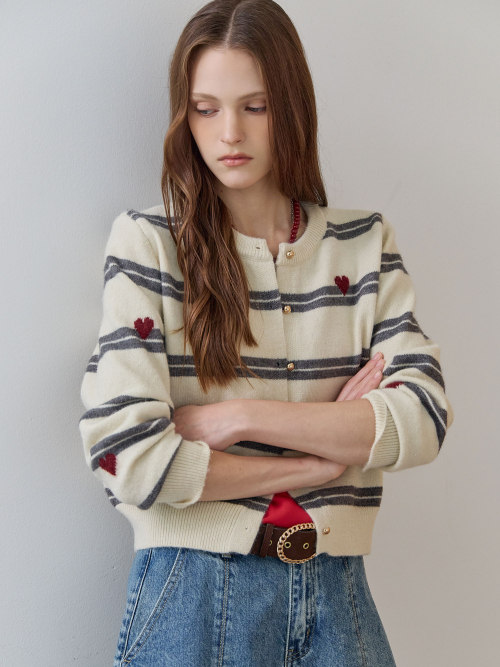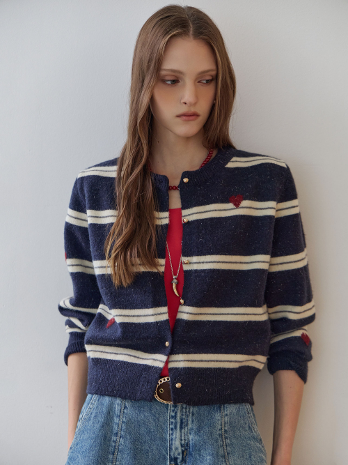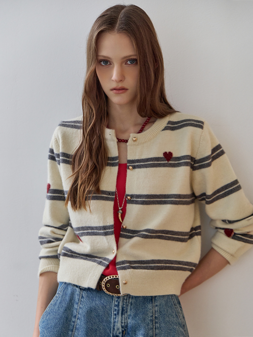 하트 스트라이프 펄 니트 가디건