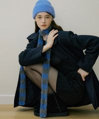 EOT FLUFFY SINGLE WOOL HALF COAT NAVY