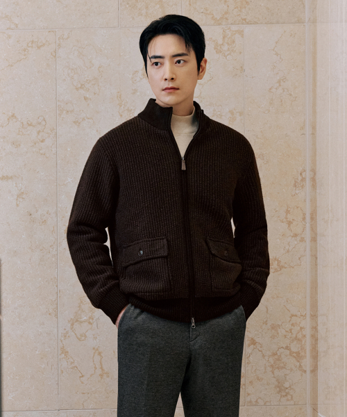 25FW 울 블렌드 윈드프루프 니트 집업 브라운