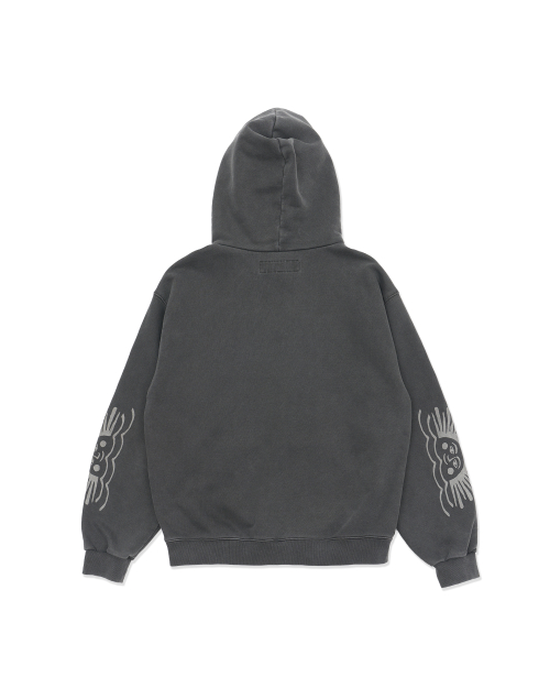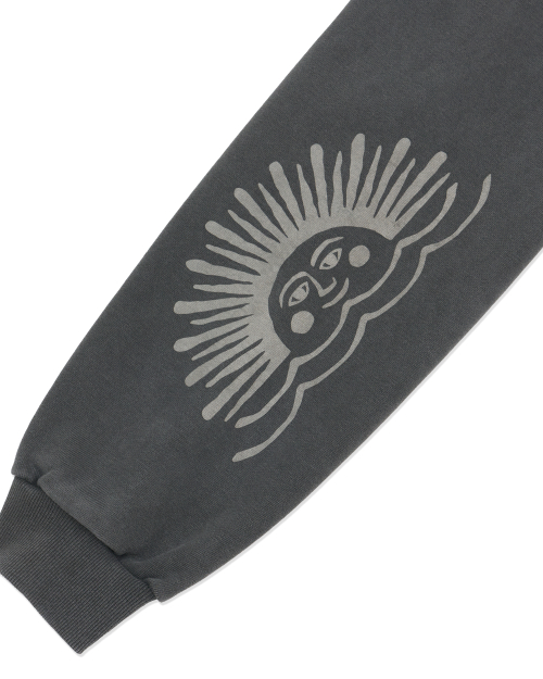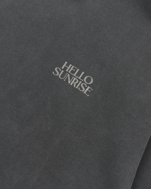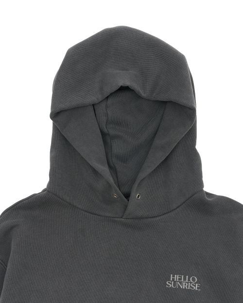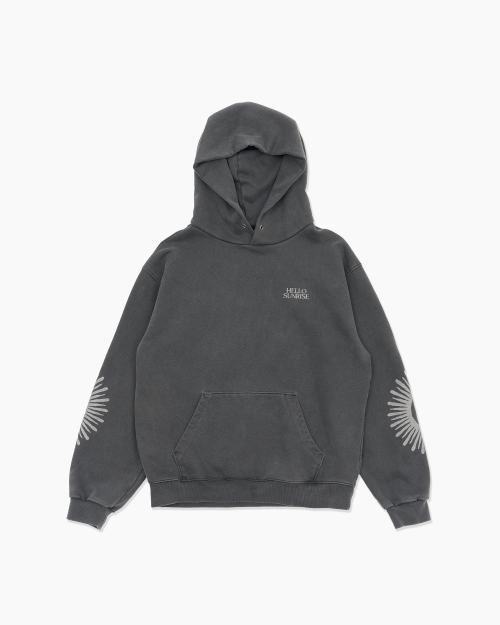 헬로선라이즈 시그니처 그래픽이 들어간 피그먼트가공 후드입니다.