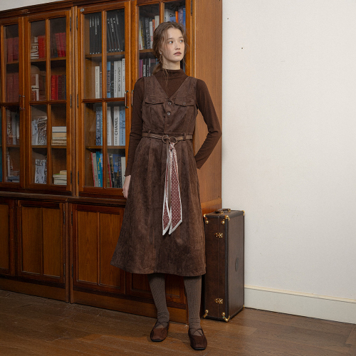 PM_V-neck slim fit jumpsuit_BROWN